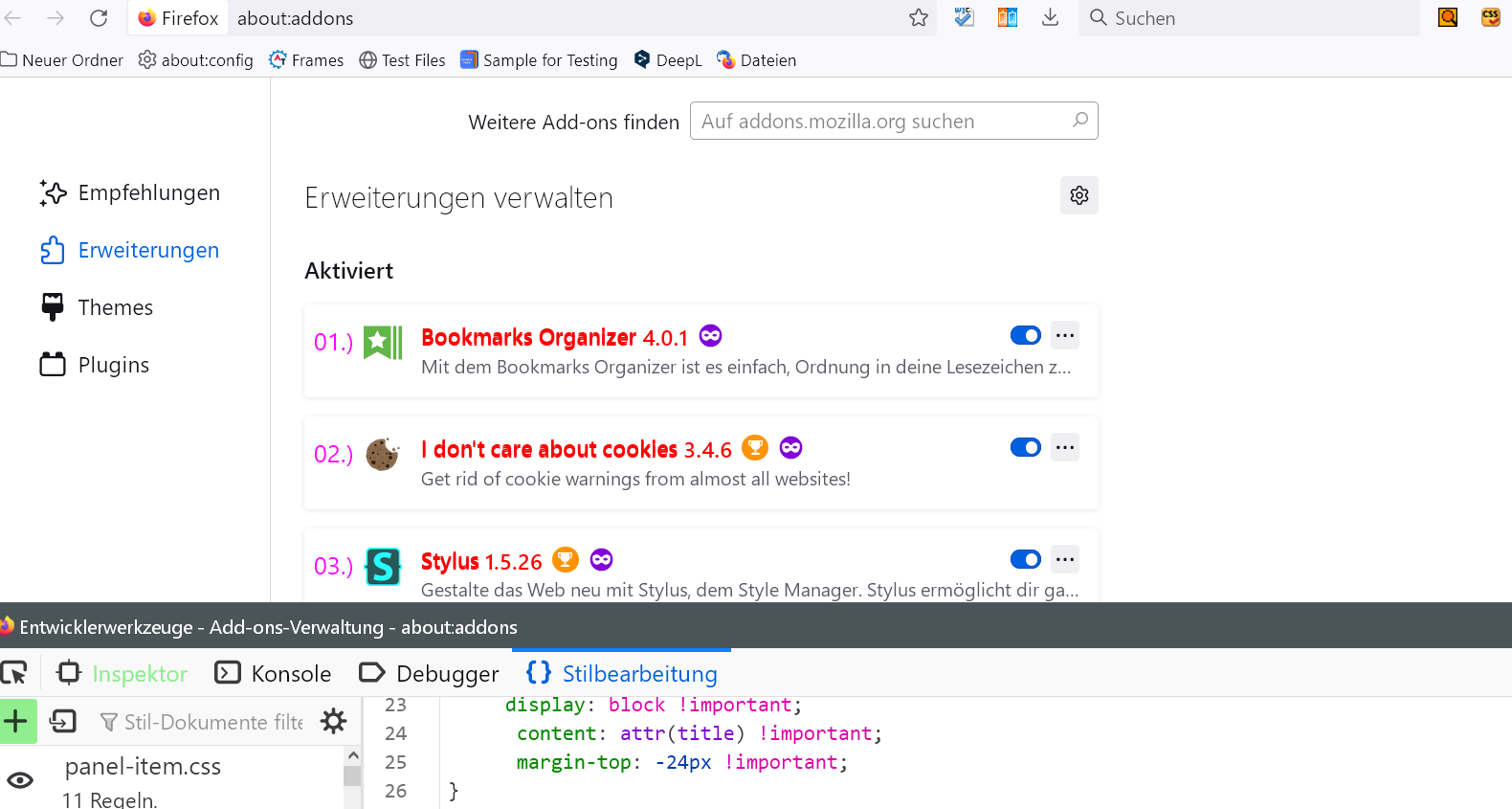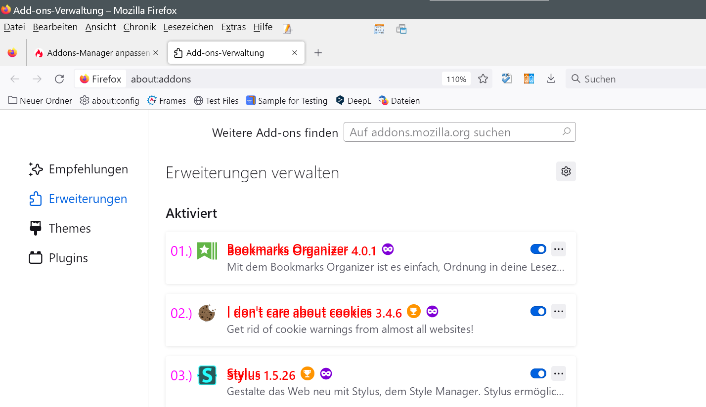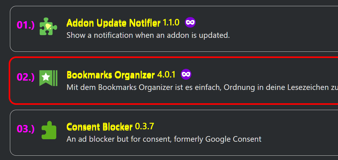 /**** Nummerierung der installierten Erweiterungen im AddonsManager ****/