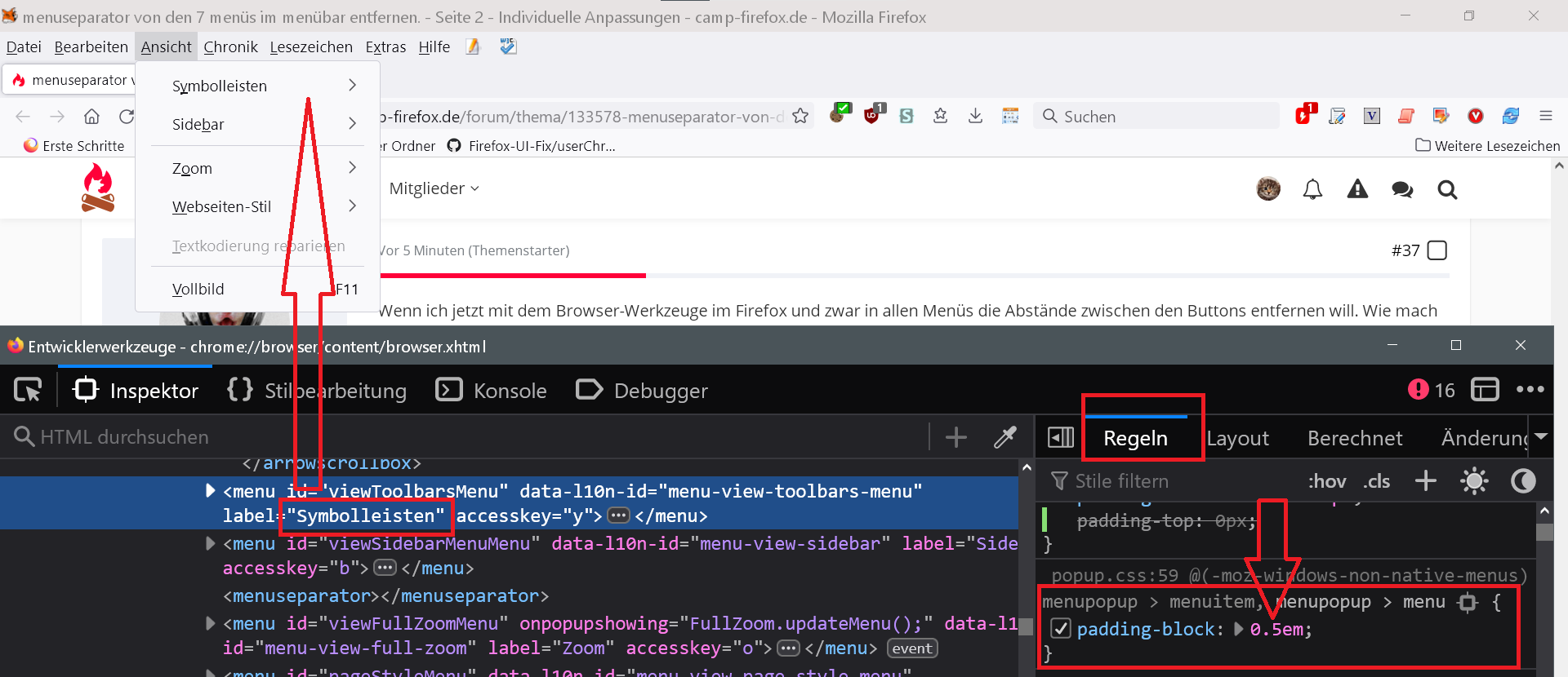 Bisher habe ich folgenden Code in der "userChrome.css" drinstehen:
