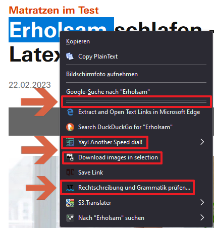 Ich wollte einmal nachfragen, ob mir jemand helfen kann mein Kontextmenü (rechte Maustaste) anzupassen, wenn ich ein Wort auf einer Website markiert habe. Es wäre schön, wenn man mir das bitte ganz leicht und simpel erklären könnte, wie man dort etwas unsichtbar macht, damit ich es später auch alleine nachbauen kann.