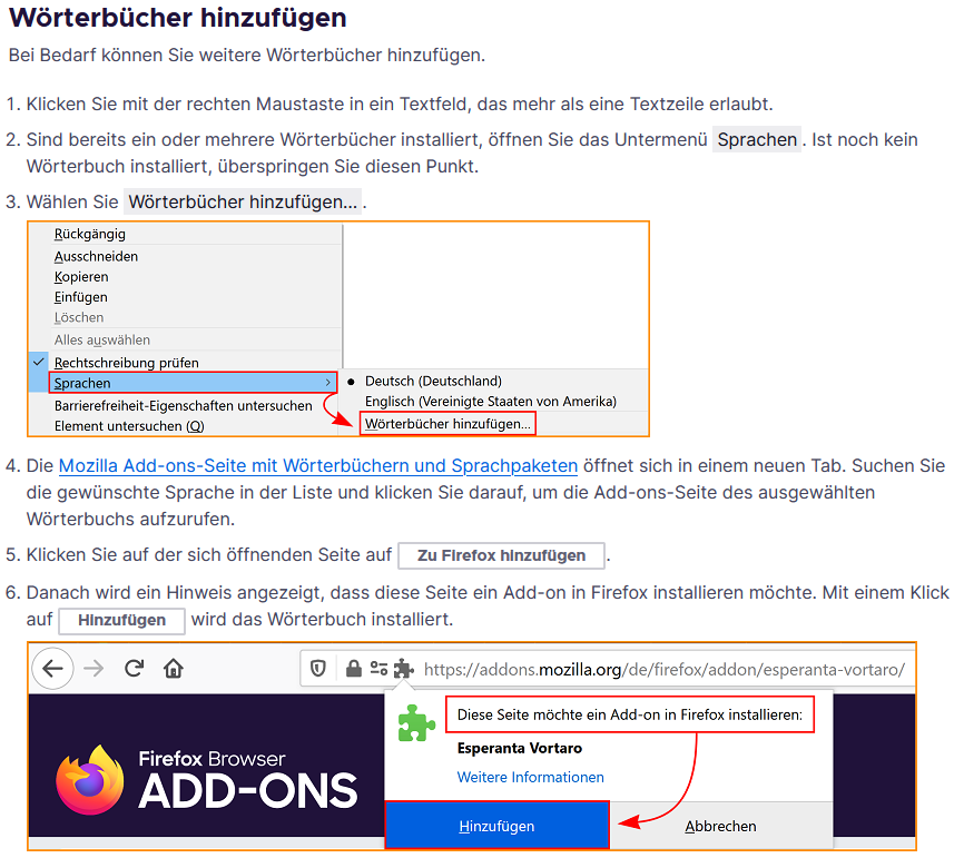 ich habe das Problem, das ich gerne Fachbegriffe zur Rechtsschreibkontrolle in Firefox hinzufügen möchte.