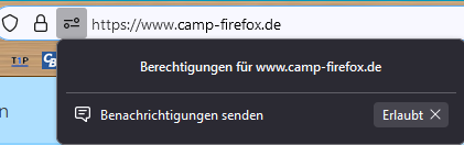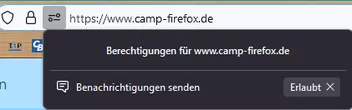 Natürlich vorausgesetzt, dass du die Anfragen nicht in den Firefox-Einstellungen abgeschaltet oder bereits eine Entscheidung für diese Domain getroffen hast, welche in den Firefox-Einstellungen hinterlegt ist.