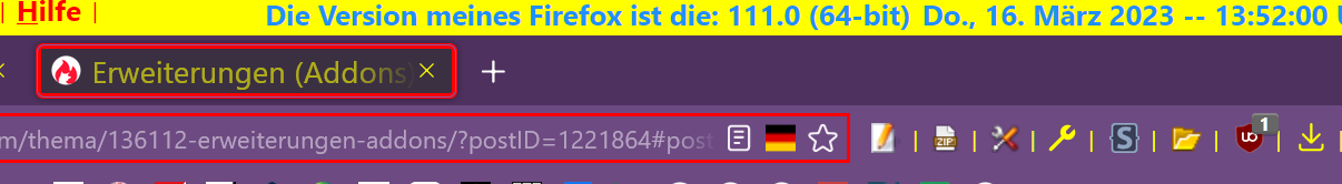 Seit dem Update auf die Version 111 meint Firefox, dieses Icon ganz am Ende meiner Symbolleiste platzieren zu müssen und mir vorzuschreiben das es so auszusehen hat: