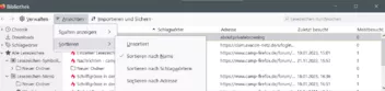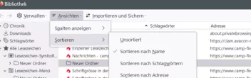 Es wird aber die Sortierung aus dem Lesezeichen-Menü übernommen.