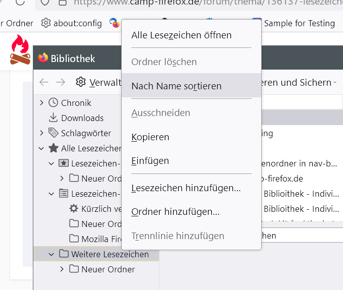 Lesezeichen sortieren