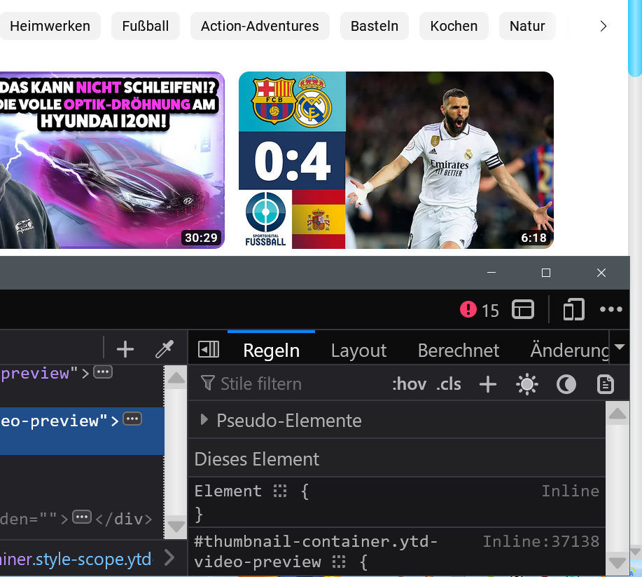 Wenn die Entwickler-Werkzeuge geöffnet sind, dann fehlt der Thumb darin.