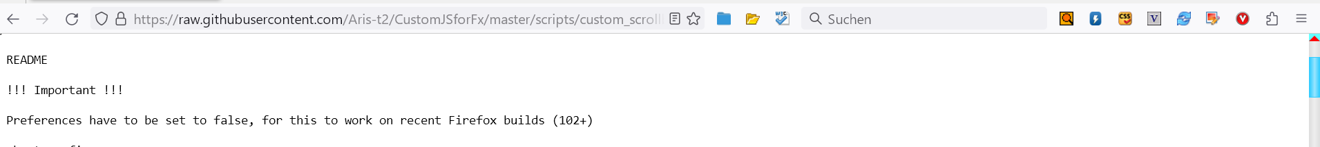 /* Firefox userChrome.js tweaks - 'Custom Scrollbars' for Firefox