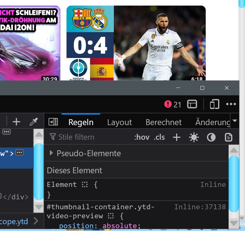 Wenn die Entwickler-Werkzeuge geöffnet sind, dann fehlt der Thumb darin.