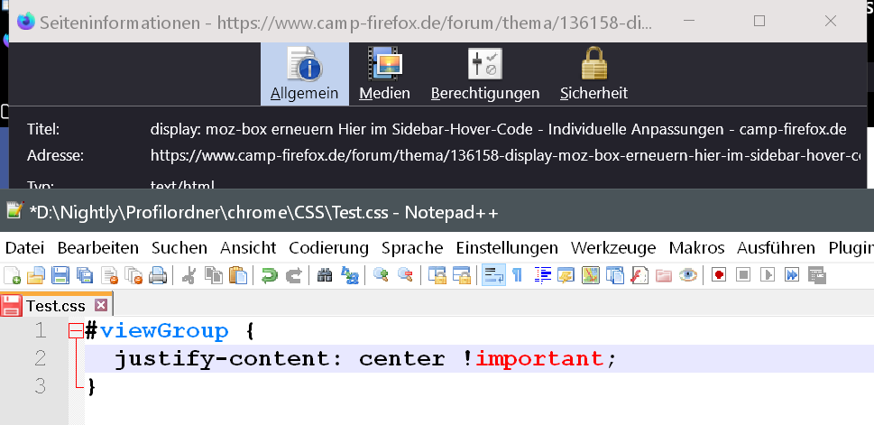 Nur um Missverständnissen vorzubeugen, und nach meinem Wissen: die erwähnten Änderungen im CSS Code für Nightly 113.x funktionieren generell nicht in Fx 111.x, also der aktuellen Release Version.