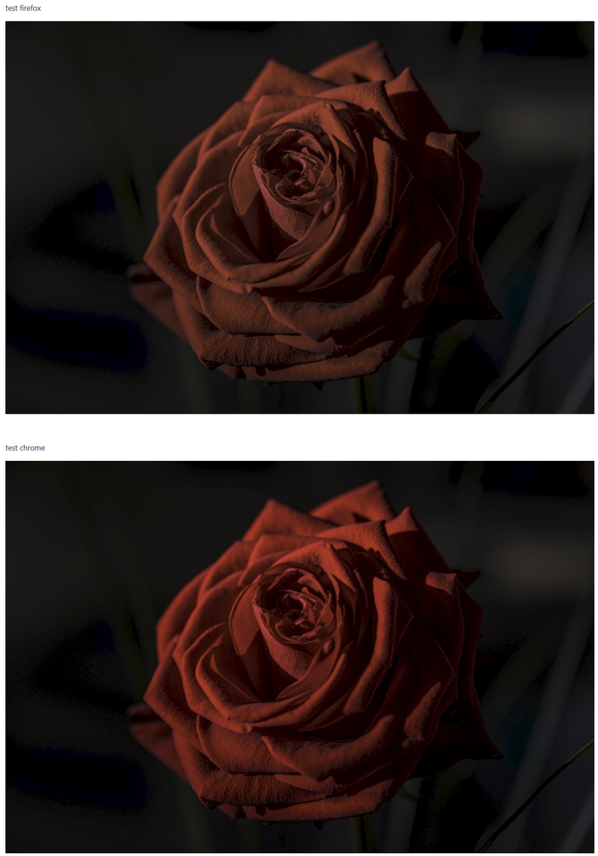 Hallo, ich habe ein Frage zum Fotoupload. Wenn ich Bilder per Browser auf Webseiten hochlade werden die Farben durch Firefox verändert, in der Regel werden sie blasser, insbesondere Rottöne. Wenn genau dieselbe Bilddatei mit Chrome oder Edge hochgeladen wird tritt dieser Effekt nicht auf. Die mit diesen Browsern hochgeladenen Bilder sehen exakt wie das Original aus. Farbmanagement in Firefox ist aktiviert, die Bilddateien haben als Farbprofil sRGB eingebettet. Die Ansicht von Bildern auf Webseiten ist davon NICHT betroffen, es geht ausschließlich um Fabveränderungen beim Upload. Wie kann ich Firefox dazu bringen, daß Bilder beim Upload nicht verändert werden? Beispiel siehe Anlage.