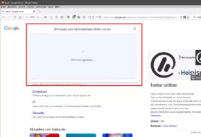 Gehe ich hier so vor wie üblich öffnet sich dabei ein Fensterchen 'Mit Google Lens nach beliebigen Bildern suchen'. Lasse ich den Link innerhalb dieses Fensterchen los öffnet sich zwar wie gewünscht ein neuer Tab, die ursprüngliche Seite wechselt dann aber zu den Lens-Suchergebnissen. Siehe Bilder.