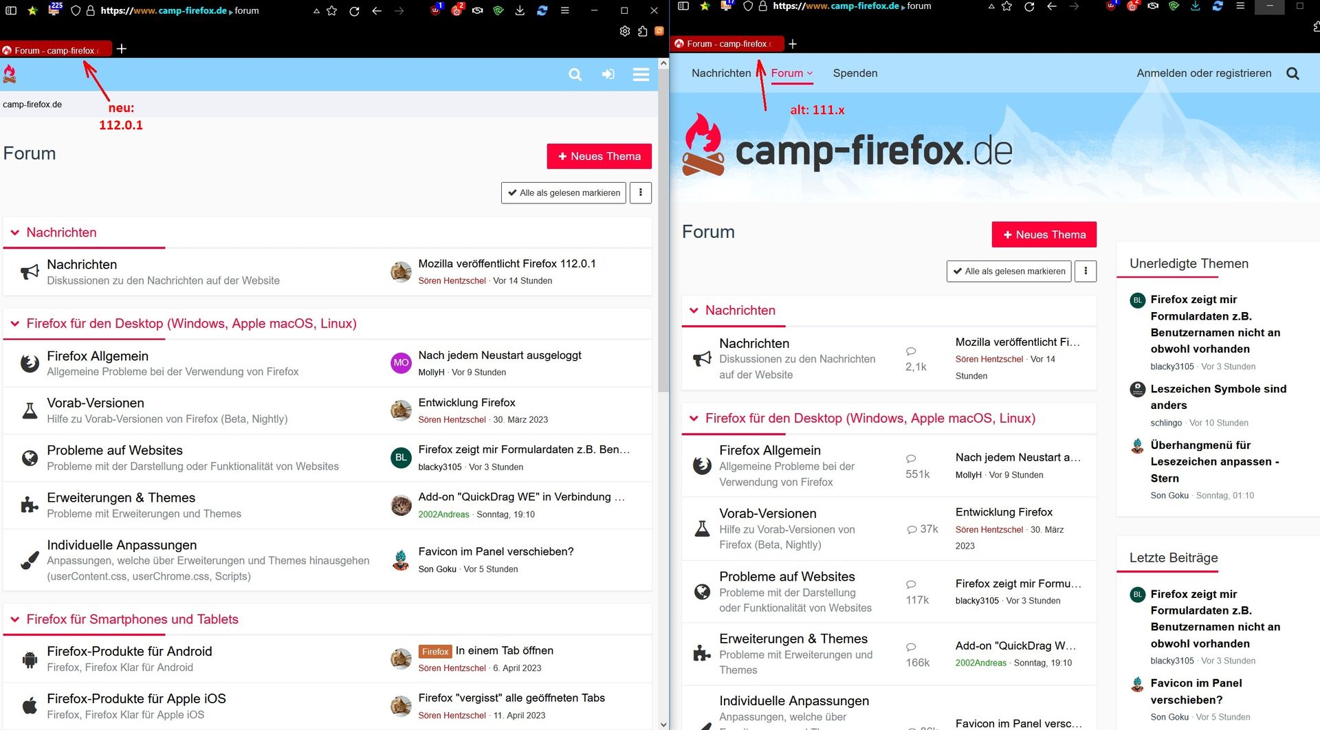d.h. der Text ist links nicht mehr zentriert sondern leicht nach unten gerutscht. Was sich auch minimal geändert hat ist die Anzeige des "+"-Symbols für einen neuen Tab. Dieses ist in der neuen Version minimal größer und dicker.