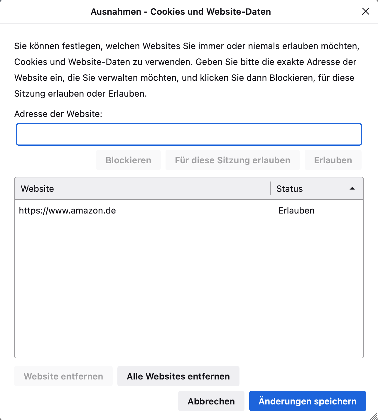 Seiten, die ich oft besuche, sollen Cookies speichern, damit ich nicht jedesmal die Cookie-Einstellungen wieder neu anpassen muss.