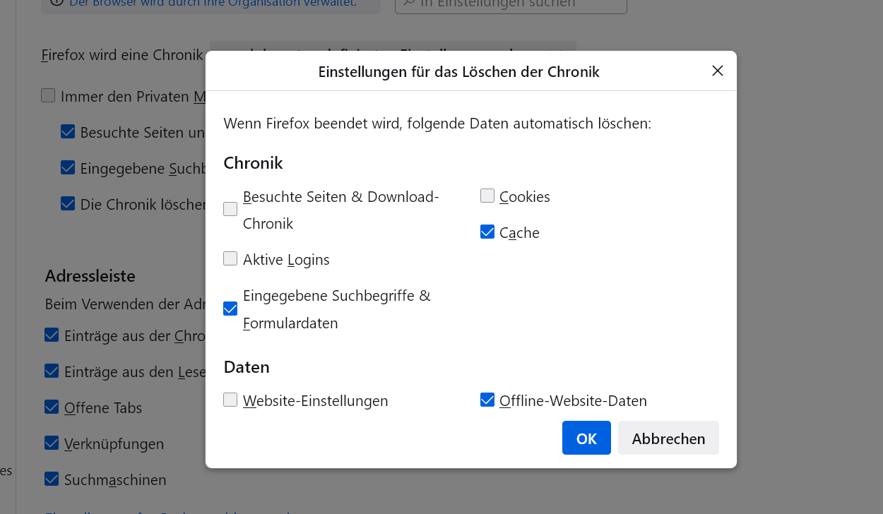 Ich möchte Grundsätzlich alle Cookies beim beenden von Firefox löschen, aber ein paar Ausnahmen machen.