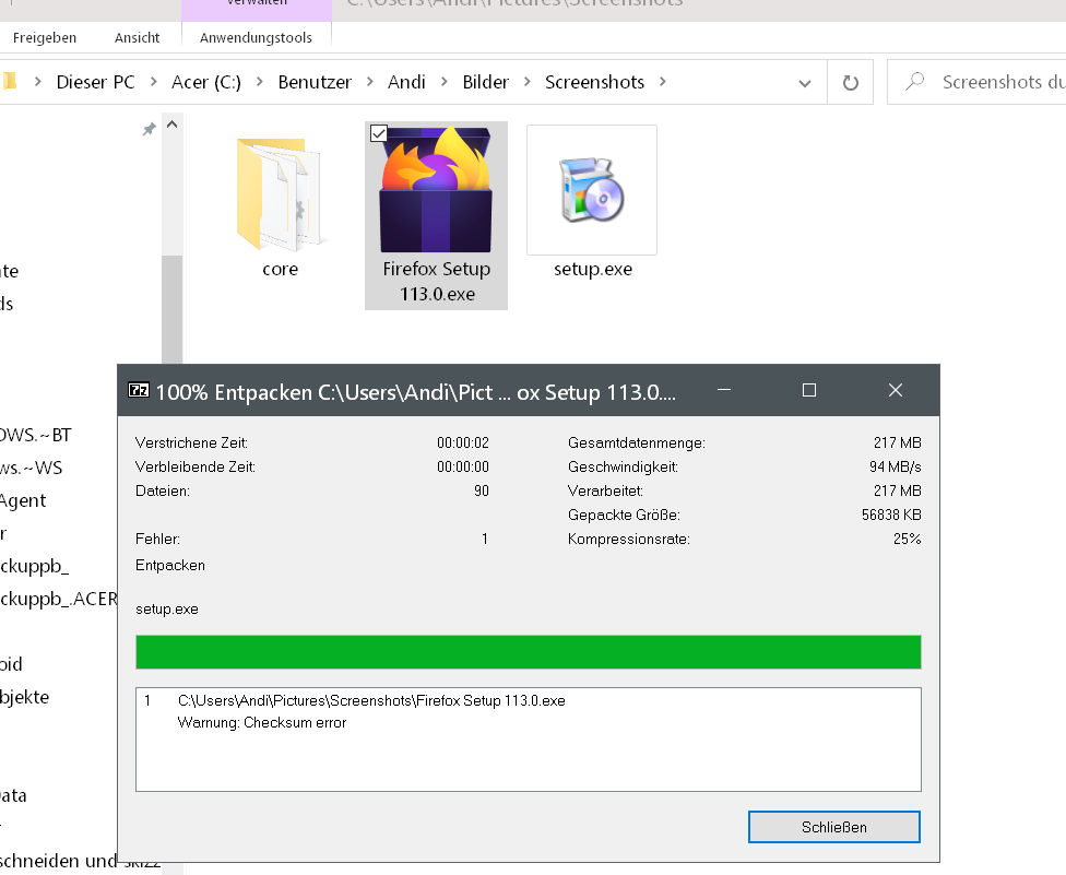 //Eine kleine Frage an euch, denn ich möchte dafür kein extra Thema eröffnen: Ich erhalte, wenn ich die 113 .exe Version (egal ob 32 oder 64bit) versuche mit 7zip zu entpacken einen "Checksum error". Ist das bei euch auch so?