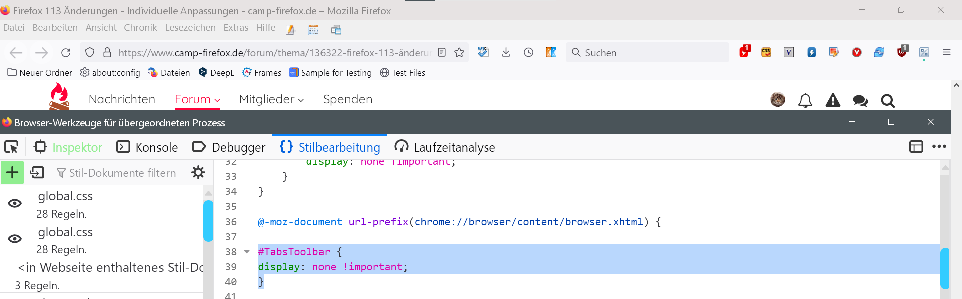 • Den Inhalt der UserChrome.css...?