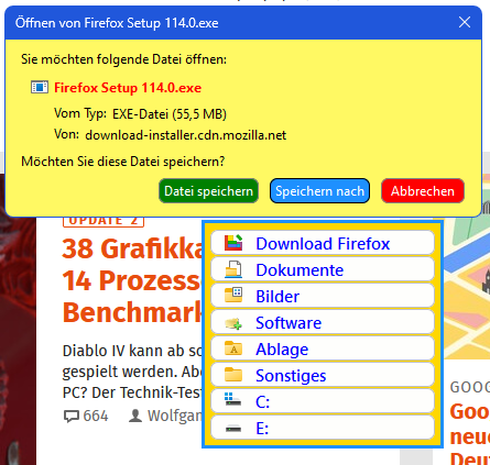 Nun habe ich festgestellt, da ist doch noch Sand im Getriebe, denn es wird zwar alles sauber dargestellt, aber bei der Auswahl eines bestimmten Download-Ordners (Klick darauf) passiert nichts mehr. Das betrifft dann alle Versionen von Firefox, auch mit Deinem Script.
