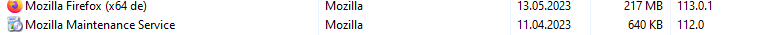 wie ihr seht habe ich einen Eintrag von der Version 113.0 und der andere von der aktuellen Version 113.0.2 !