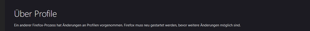 Auch dort müssen alle Profile aufgezählt sein. Damit kann ich zB die Dark-Erweiterung ausschliessen, eigentlich Firefox im Ganzen. Daher bleibt nur dein Windows und/oder installierte Software als Ursache über, siehe oben.