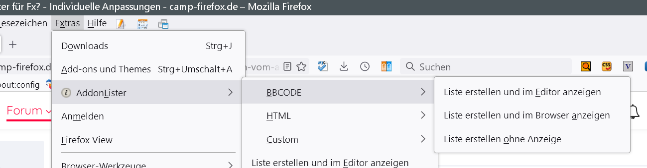 sagt mal, gibt es eine funktionierende Version des Scripts AddOnLister.uc.js für Firefox?