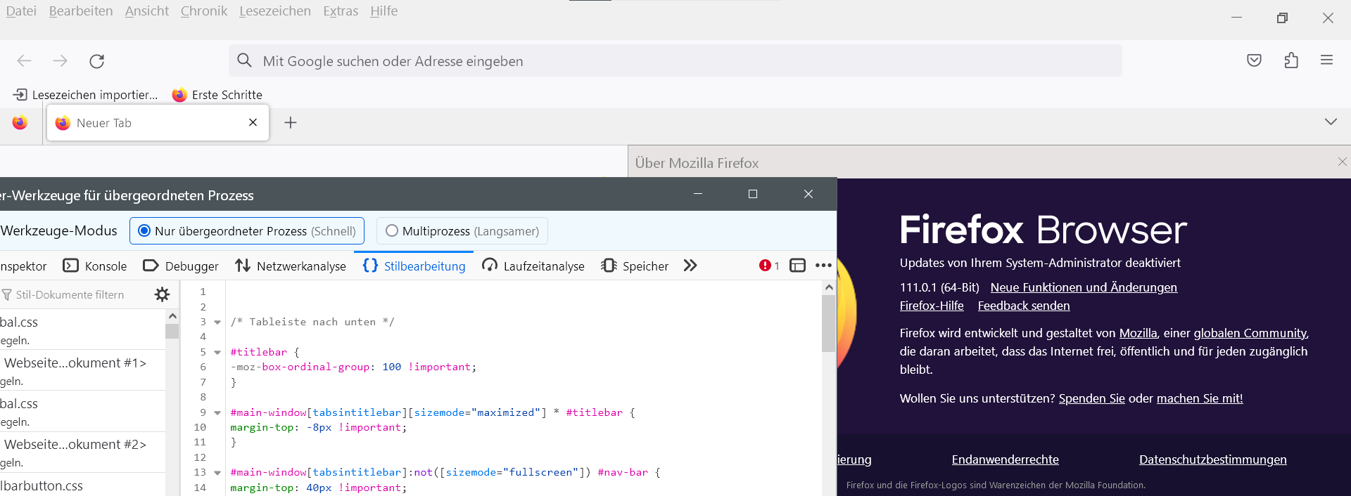 seit dem letztem Update wurde meine gesamte Firefox oberfläche durcheinander gebracht.