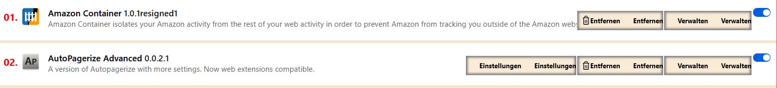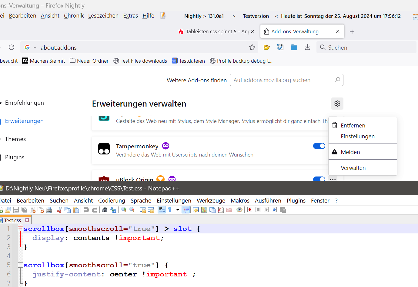 Die Lösung von 2002Andreas aus #94 hingegen funktioniert hier :) und lässt auch den AddonManager unbehelligt.