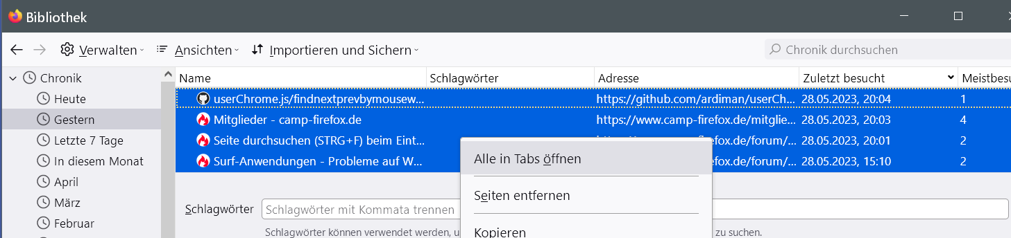 Ich habe auch keine Datei "sessionrestore.jsolnz4" gefunden. Es sind lediglich die Dateien Recovery.Jsolnz4 und recovery.baklz4 von heute vorhanden, sowie je eine Datei previus.und update.jsolnz4 mit aktuellem Datum. Dazu noch ein paar Ältere.