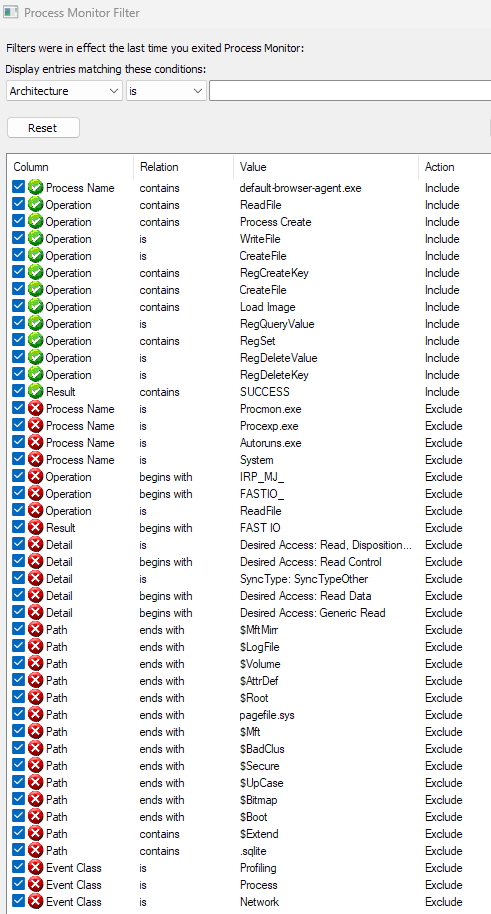 Einstellungen für ProcessMonitor (sysinternals) wie gezeigt.
