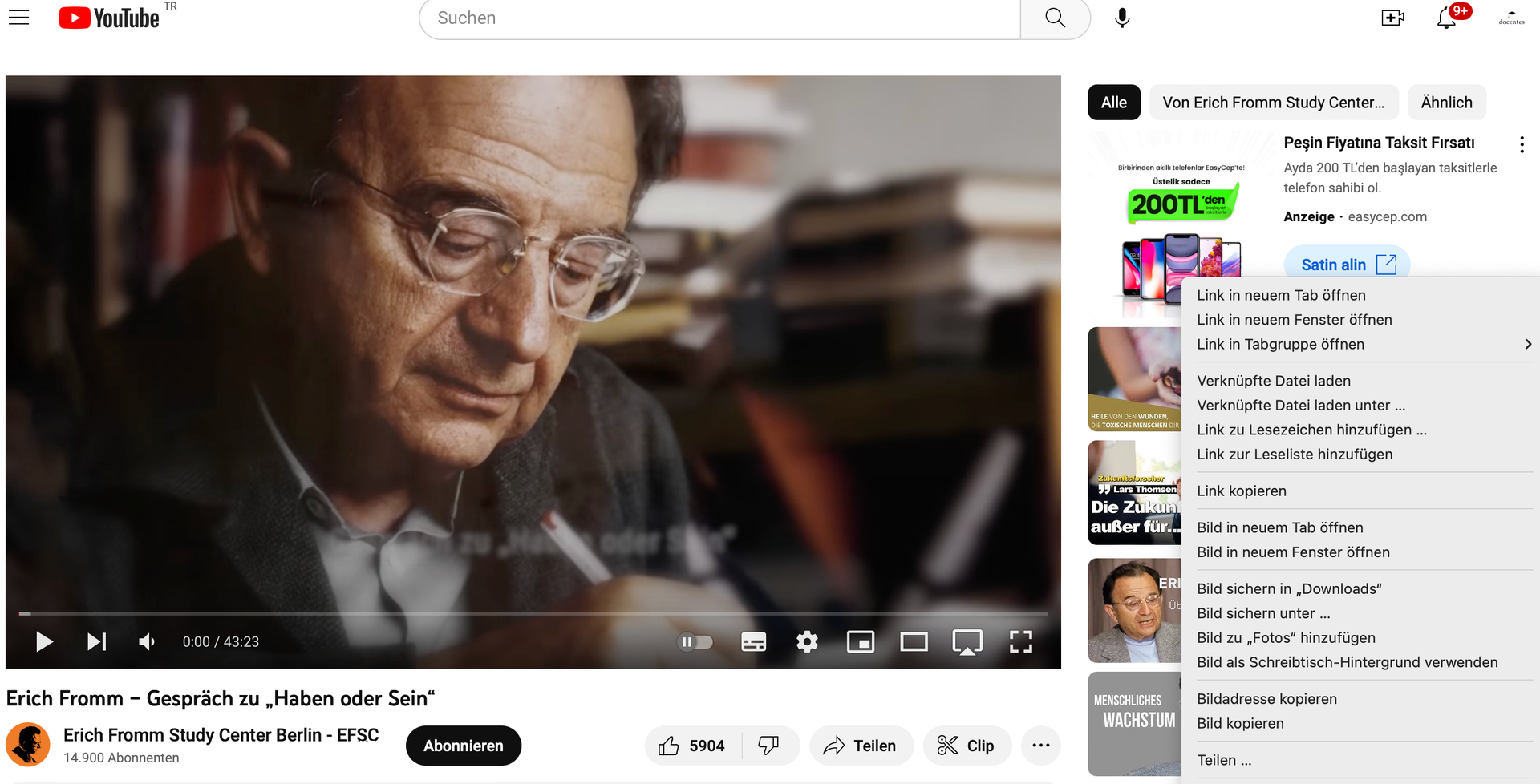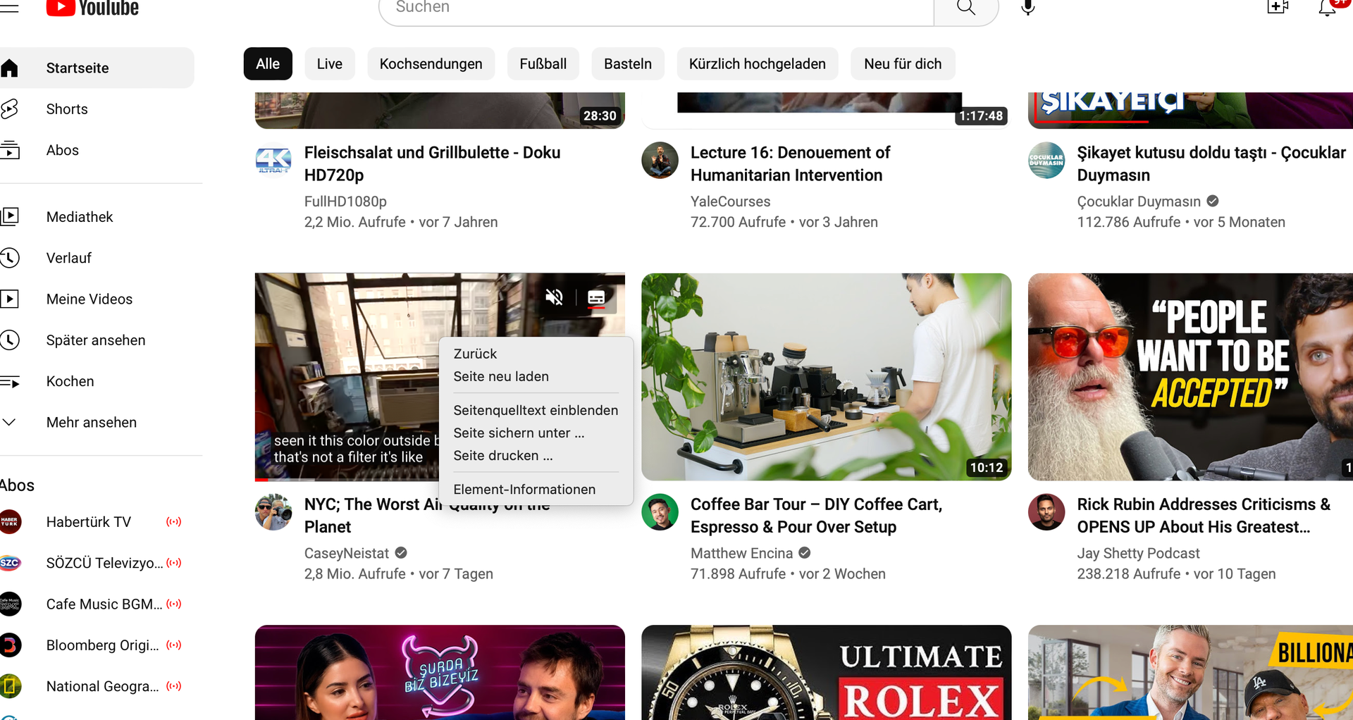 Sobald ich auf eines der recht stehenden Videos einen Rechtsklick mache, erscheint in der Tat
