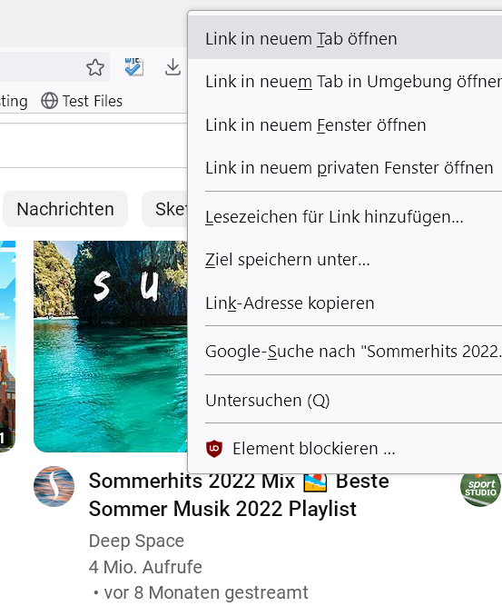 "Link in neuem Tab öffnen." und ich kann den Link in einem neuen Tab öffnen.