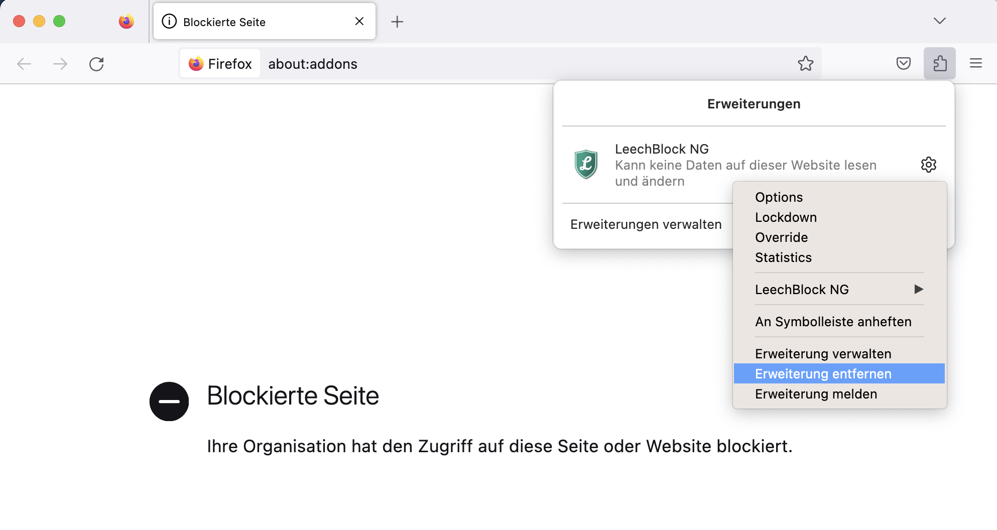 Das Addon ist sekundär, aber der Vollständigkeit halber: es geht um den Web-Blocker LeechBlock.