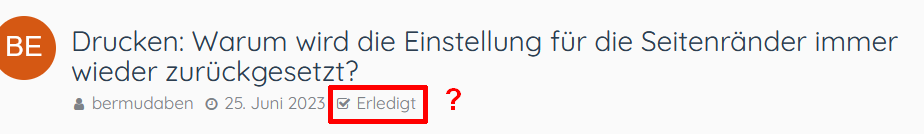 • Erneut getestet, und siehe da: Die Einstellung für die Seitenränder wird wieder NICHT gespeichert.