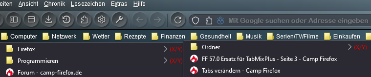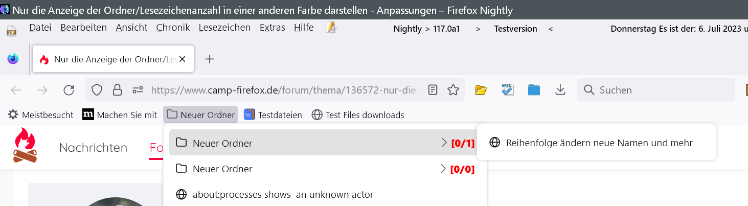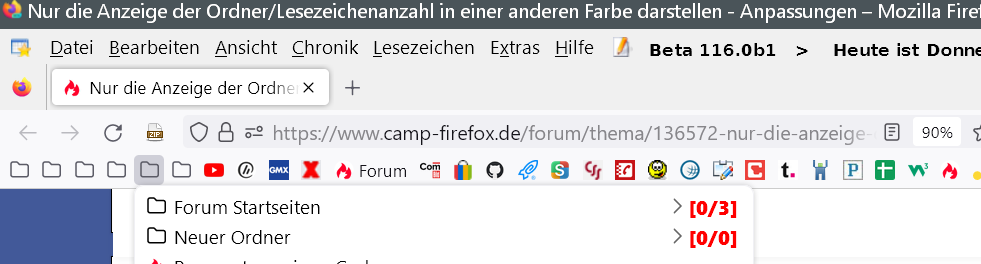 Ich suche nach einem Weg, nur die Anzeige der Ordner/Lesezeichenanzahl in einer anderen Farbe darzustellen, wie in dem zusammen gebastelten Screenshot.