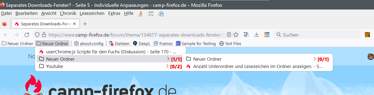 Ich habe gerade mit folgendem Skript, das im Lesezeichen-Menü die Anzahl der Ordner/Lesezeichen je Ordner anzeigt, herumgespielt...