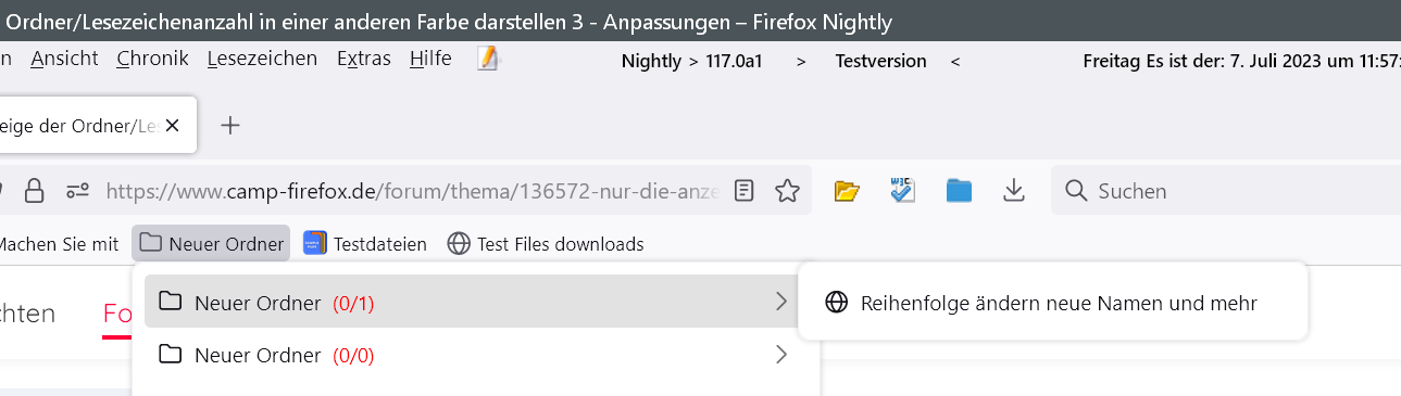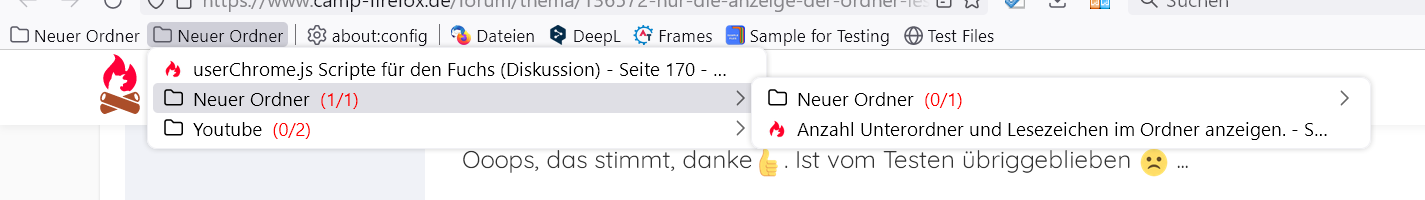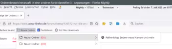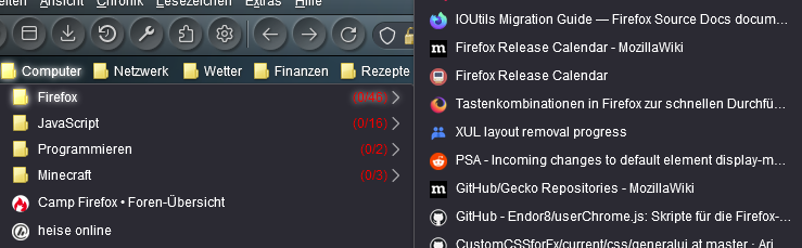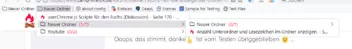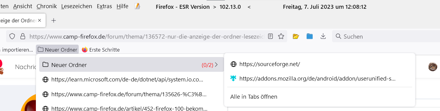 Hier funktioniert es in der Lesezeichenleiste in den Unterodnern.