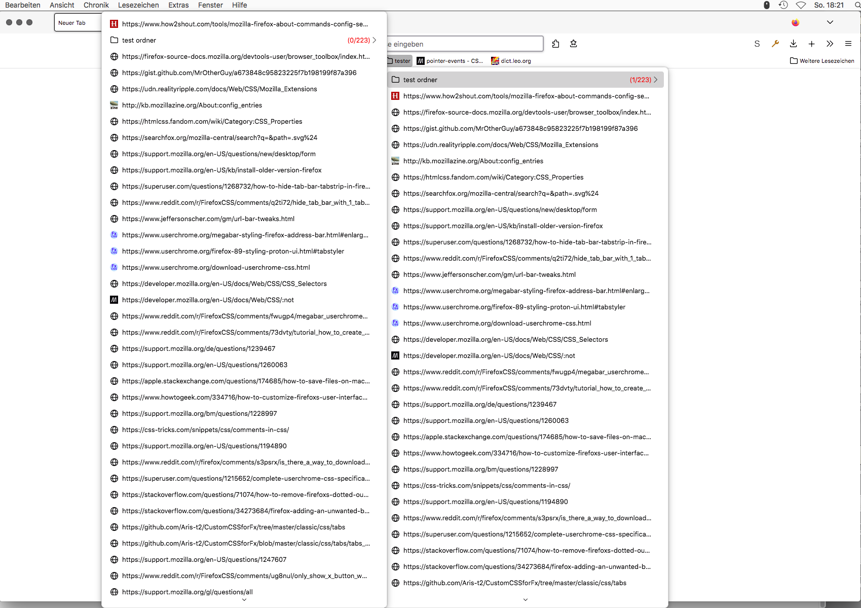 Aber bei übervollen Ordnern in der Lesezeichenleiste, und deren Unterordnern, öffnet sich das Popup wie gewohnt mit den obersten Einträgen - oben - und dann dem normalen Scrollverhalten nach unten weg