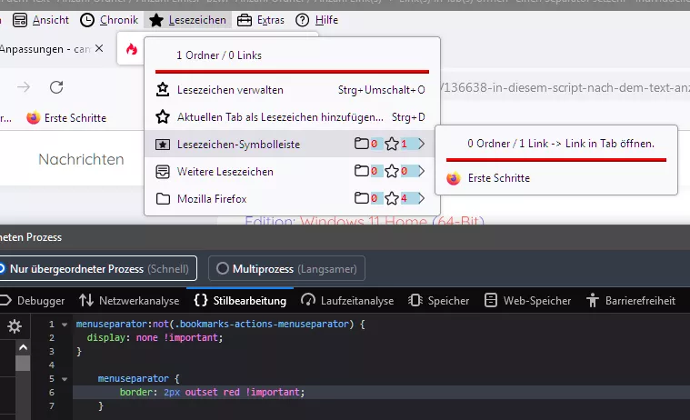 Diese Code funkt, nur im Menü Lesezeichen, wenn man viele Unterordner hat funkt es nach einigen Unterordnern nicht mehr. Siehe Bild: