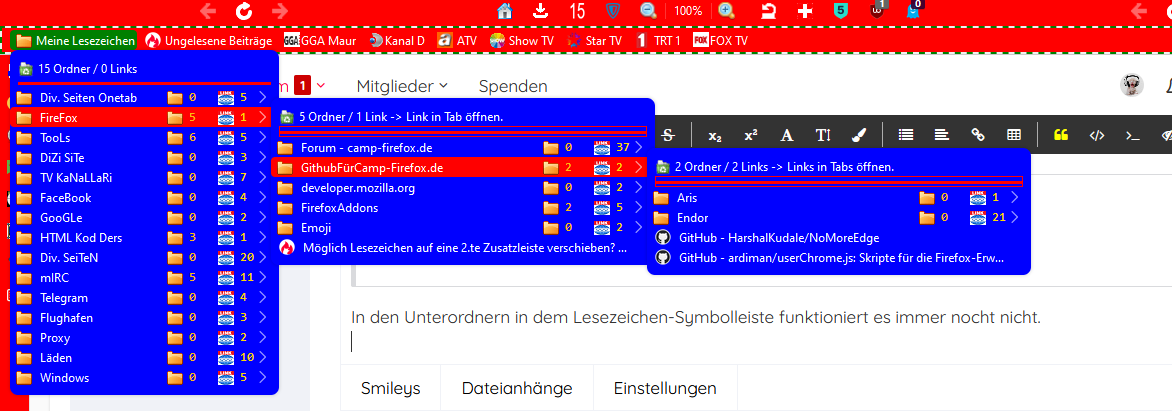 In den Unterordnern in dem Lesezeichen-Symbolleiste funktioniert es immer nocht nicht.