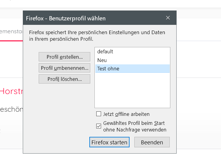 Wenn man den normalen Button in about:profiles mehrfach drückt, gibt es kein Problem, es geht nur ein neues Fenster auf im zusätzlichen Profil.