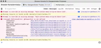 ; hier der Error in der Konsole:CustomizableUI: unable to normalize widget hatte ich schon vorher mal in der Konsole gesehen, war mir aber nicht sicher ob es mit dem Script zusammenhängt.