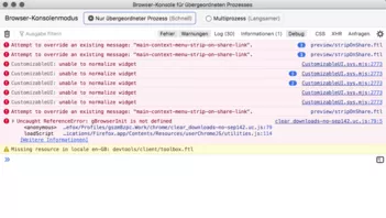 Die anderen Fehlermeldungen/Warnungen sind immer in der Konsole.