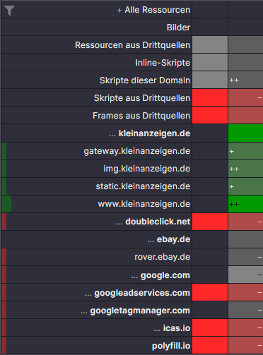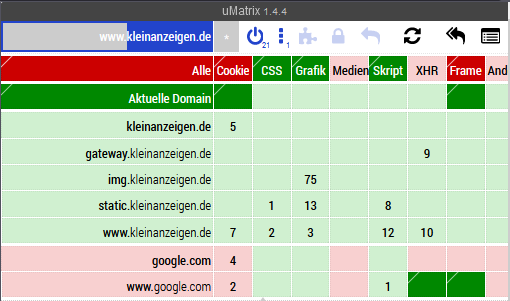 ublock und umatrix wie folgt, wobei ich erst an umatrix einstellte, dann ublock wieder aktiviert und dort arbeitete.