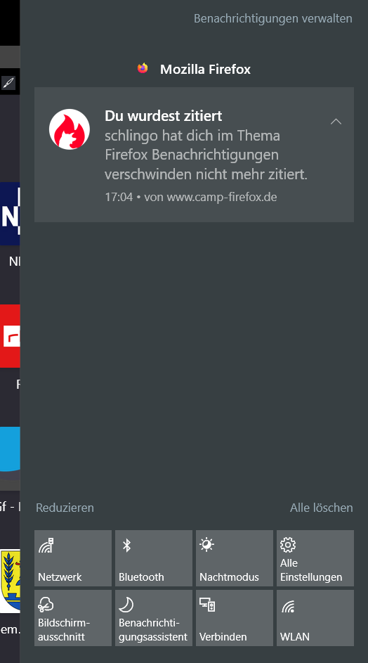 Folgendes: Seit heute, besser gesagt, seit dem Update auf Firefox 117 verschwinden die Firefox Benachrichtigungen von den verschiedenen Websites nicht mehr von selbst. Vorher war es so, dass die ein paar Sekunden eingeblendet wurden und danach wieder weggingen. Jetzt muss ich die Nachrichten immer manuell schließen. Dazu kommt noch, dass wenn ich auf "schließen" klicke, sich die Nachricht nicht nur schließt, sondern ich auch auf die entsprechende Seite verlinkt werde, was ja gar nicht gewünscht ist. Ich hab mal einen Screenshot von einem Beispiel solch einer Benachrichrichtigung angehängt, die ich meine. In dem Falle würde ich dann eben beispeilsweise auf das entsprechende Youtube Video verlinkt werden, wenn ich auf schließen gehe.