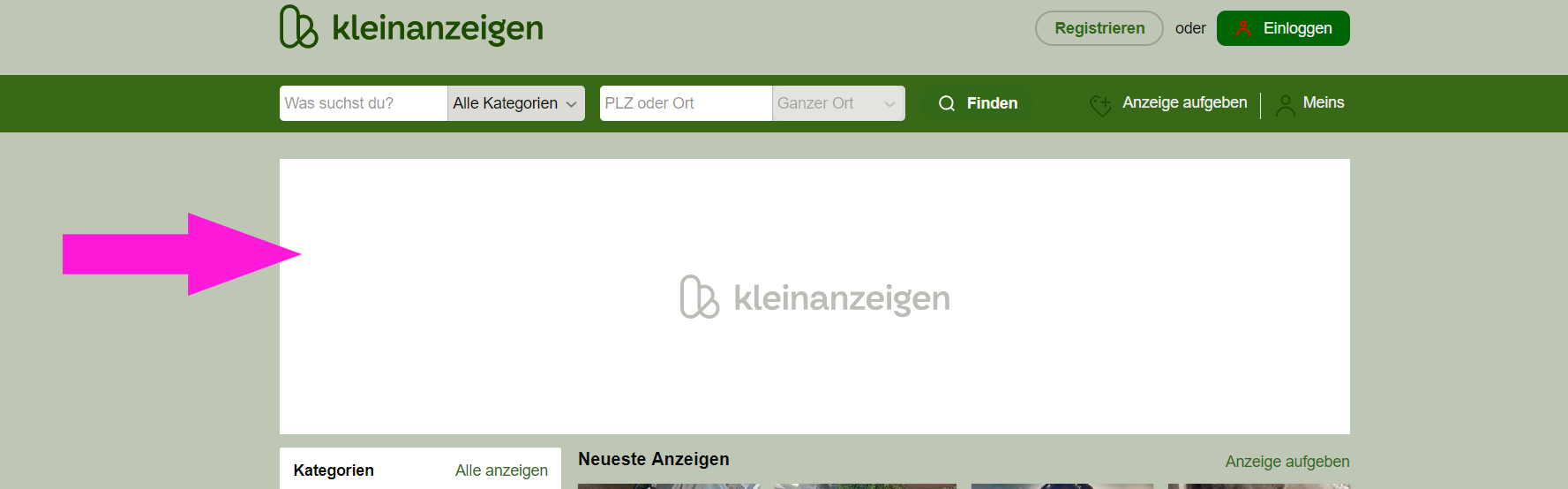 ich mlchte auf der Startseite von kleinanzeigen diese Webung weg haben