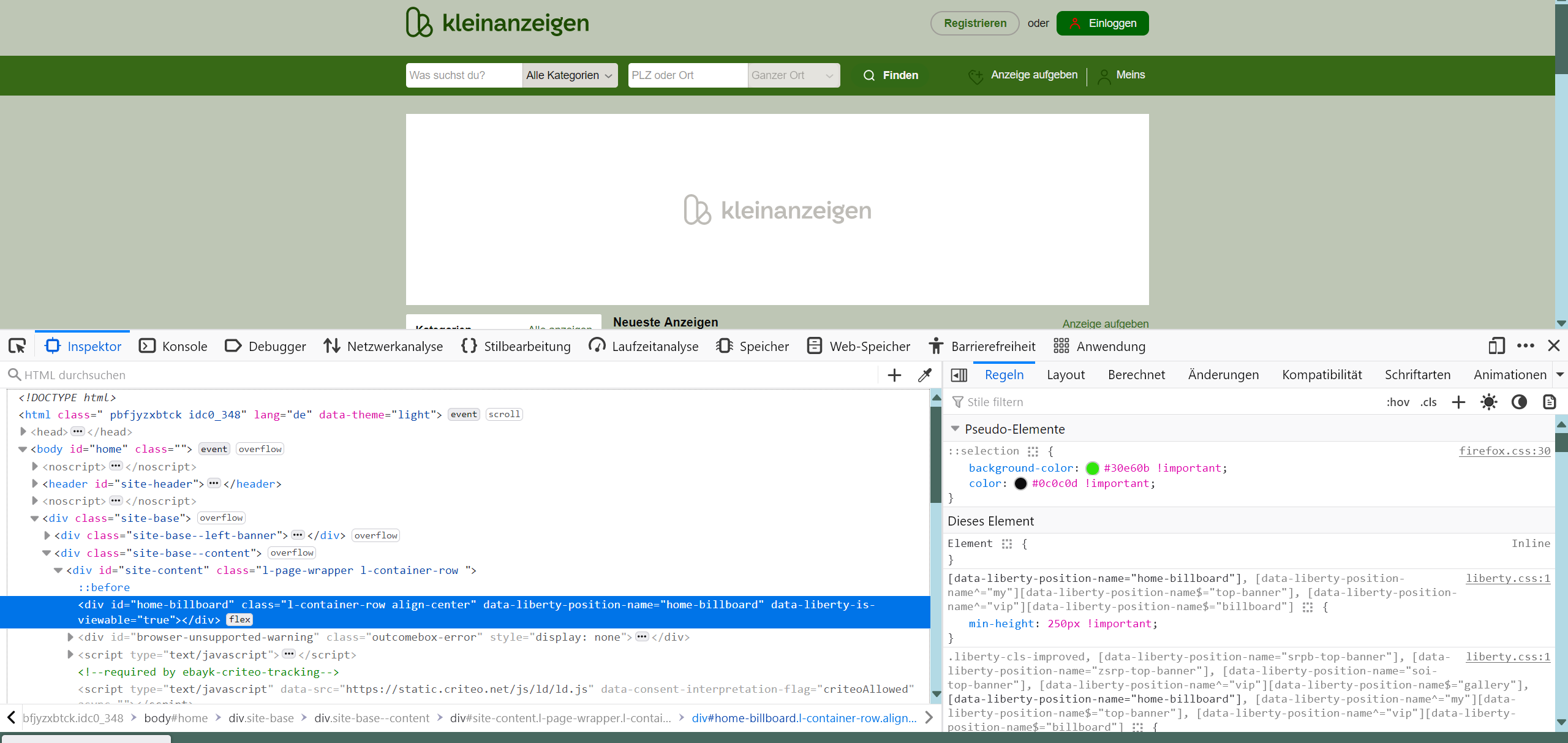 Momentan denke ich, dass [data-liberty-position-name="home-billboard"] vom Server gesteuert wird