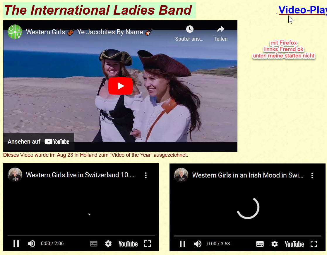 Ich bette Video's, die ich auf YouTube veröffentlicht habe, auf meiner Webseite ein. Seit einiger Zeit öffnen die Video's auf der Webseite nicht mehr. Wenn ich aber wähle auf YT anschauen, kein Problem. Aber das ist nicht Sinn der Sache. Bei Fremd-Video's geht das Problemlos und ging auch bei meinen eigenen Jahrelang. Habe alle Möglichkteiten und Einstellungen bei YouTube, meiner Webseite und auf dem Computer durchgecheckt - tagelanger Frust. Bis ein Freund mir empfohlen hat, es mal mit Chrome oder Edge zu versuchen. (sorry, bin so auf Firefox fixiert)...und siehe da....es funktioniert problemlos. Wenn das nicht hinzukriegen ist, muss ich leider Firefox für immer verbannen. Weiss Jemand, wie man das Problem ev. lösen könnte? Auf YT ist einbetten gestattet. Danke