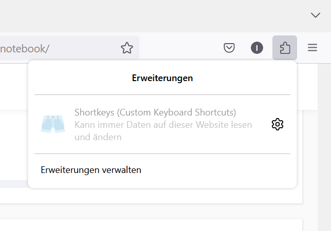• Wenn ich die Erweiterungen-Schaltfläche drücke, sieht das so aus: