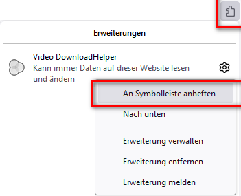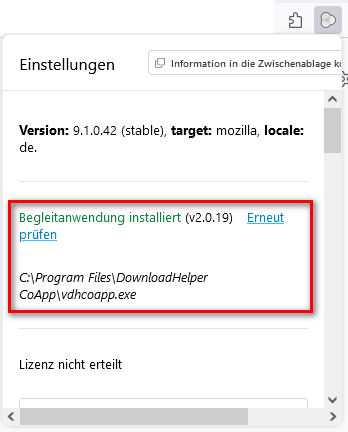 Tja, der Betreff sagt 's: Der "Video Download Helper" (mig) scheint in Firefox auf meinem neuen Win11 Notebook nicht zu laden. Er wird zwar in der Add-on-Verwaltung als gestartet angezeigt, aber in YT erscheint das Symbol (drei "Kugeln", farbig) nicht.
