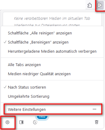 Wenn du auf die drei Kreise klickst > auf das Zahnrad > auf Weitere Einstellungen ... dann dürftest du dort hin kommen was du suchst. Wenn du da nicht hin kommst bzw. du die Kreise nicht siehst ... dann ka. Du könntest probieren das Addon mal zu entfernen und neu zu laden. Sonst hab ich auch keine Idee.