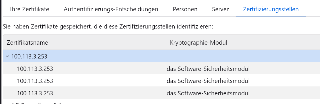 Dieses Zertifikat hatte ich hier auch vor langer Zeit schon installiert.