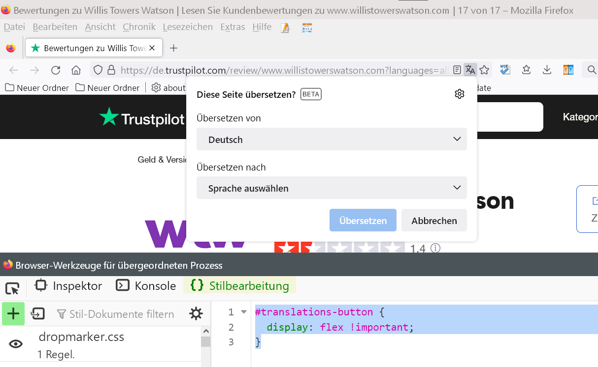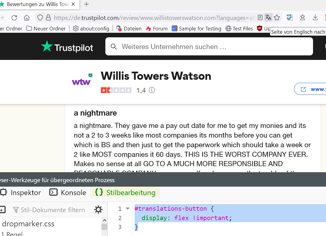 Hintergrund: Auf manchen englischsprachigen Seiten wird mir das Übersetzungssymbol angezeigt, auf dieser hier allerdings nicht, weshalb? EDIT: Weil hier auch deutschsprachige Elemente vorhanden sind?